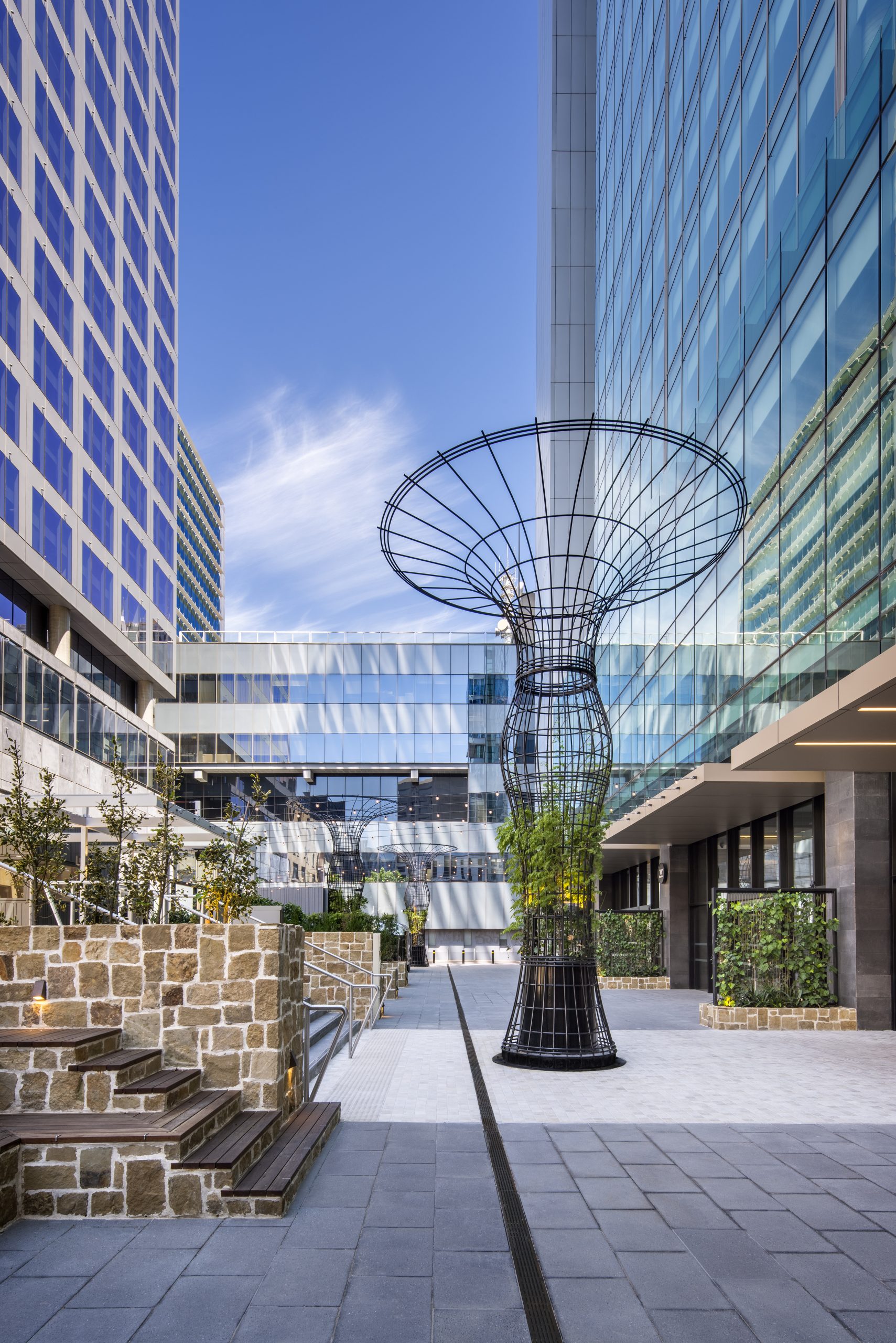 Following Mapletree’s acquisition of the A-grade office tower at 11 Waymouth Street, Linked was engaged to reimagine the ground floor and plaza to elevate the commercial arrival experience and attract a high-quality food and beverage mix. Working with leading consultants including Woods Bagot, WSP and Durie Design, Linked delivered a design outcome that increased asset value, secured top-tier restaurateurs such as MasterChef finalist Callum Hann, and introduced sculptural plaza elements inspired by Jamie Durie to create a vibrant, welcoming public space.